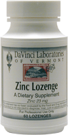 by DaVinci Laboratories Supplemental Zinc may be effective in keeping your immune system in peak working order. These lozenges contain no artificial colors. Lemon flavored.  One lozenge contains: Total Carbohydrate 1 g, Sugars 1 g, Zinc (as zinc gluconate & zinc citrate) 1 g. Other ingredients: fructose, sorbitol, microcrystalline cellulose, honey powder, stearic acid, citric acid, natural and artificial flavors, magnesium stearate, silica. This product is free of egg, gluten, milk, rice, sodium, soy, wheat, yeast, added starches, synthetic dyes, and preservatives. Suggested use: As a dietary supplement, take 1 lozenge in AM and 1 lozenge in PM or as directed by your health care practitioner. Let dissolve in mouth. Natural lemon flavor. The information and product descriptions appearing on this website are for information purposes only, and are not intended to provide medical advice to individuals. Consult with your physician if you have any health concerns, and before initiating any new diet, exercise, supplement, or other lifestyle changes. These statements have not been evaluated by the Food and Drug Administration. This product is not intended to diagnose, treat, cure, or prevent any disease. 23 mg, 60 lozenges